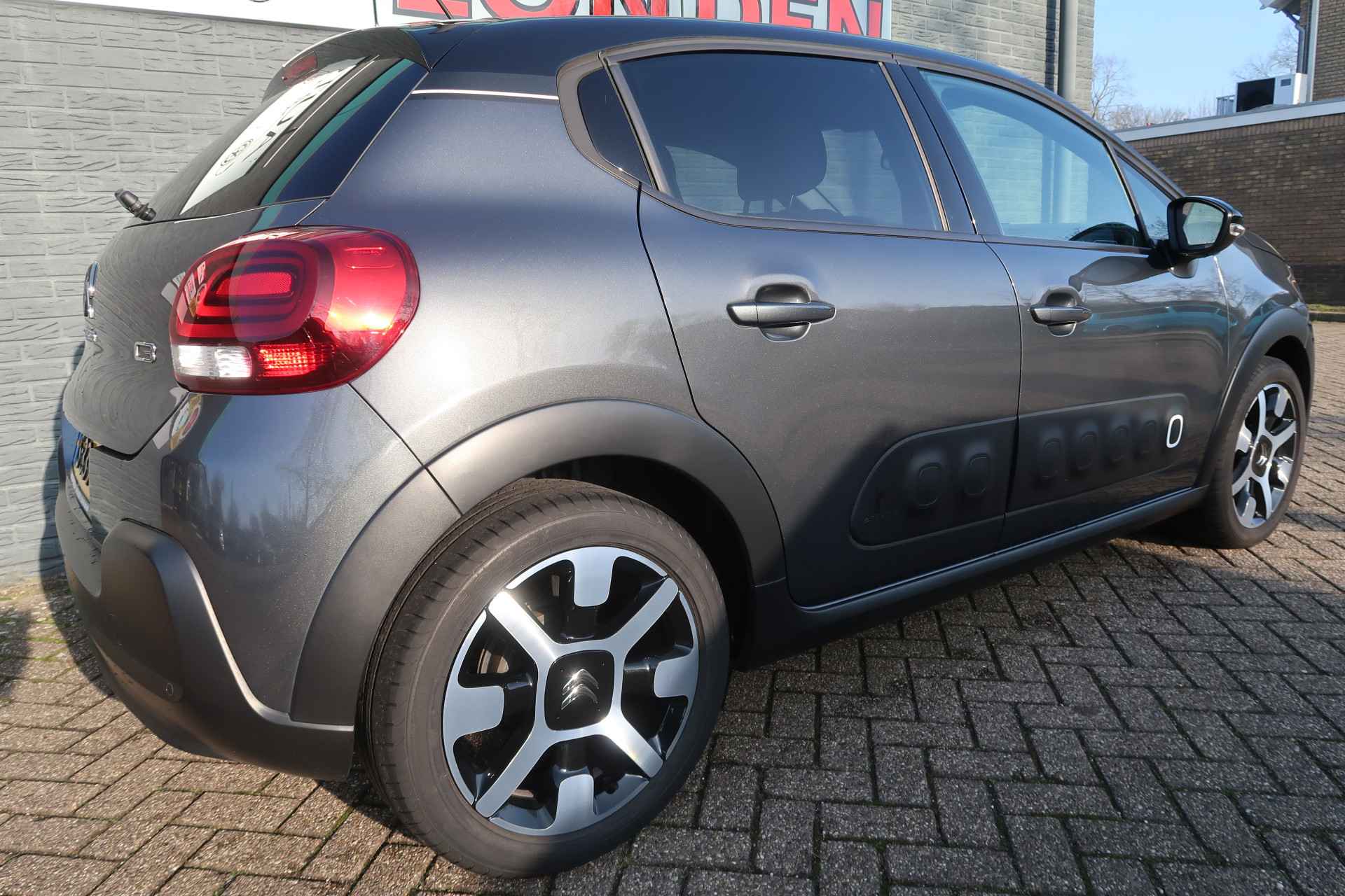 Deze Citroën C3 staat te popelen om te laten zien wat-ie in huis heeft. Bescheiden in formaat, maar groots in gemak en rijplezier. En zuinig! Met deze Citroën is een pittige rijstijl mogelijk, terwijl de motor toch spaarzaam met brandstof omgaat. Verder is de Citroën uitgerust met: 17 inch lichtmetalen velgen, LED-dagrijverlichting, donker getint glas achter en in delen neerklapbare achterbank.