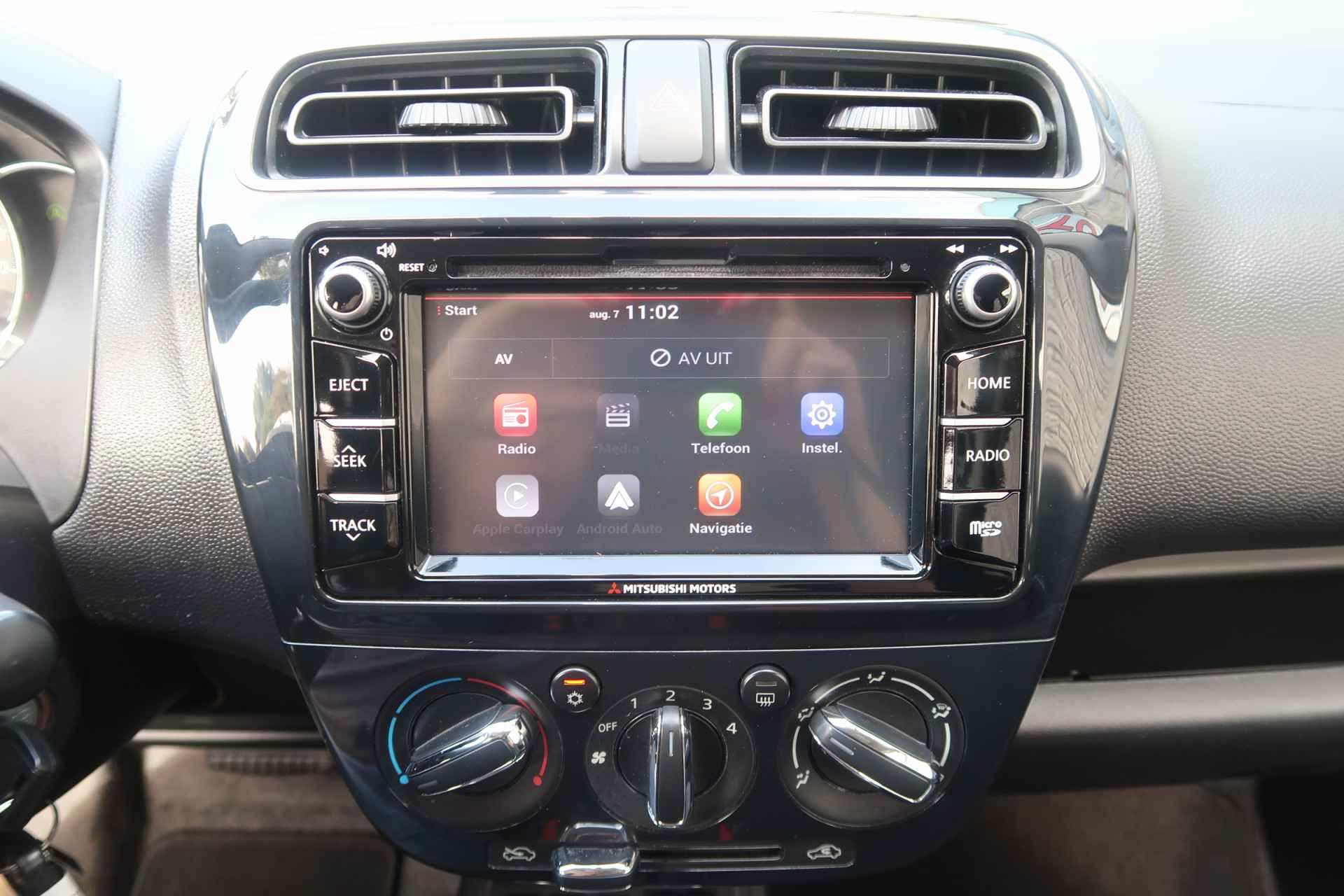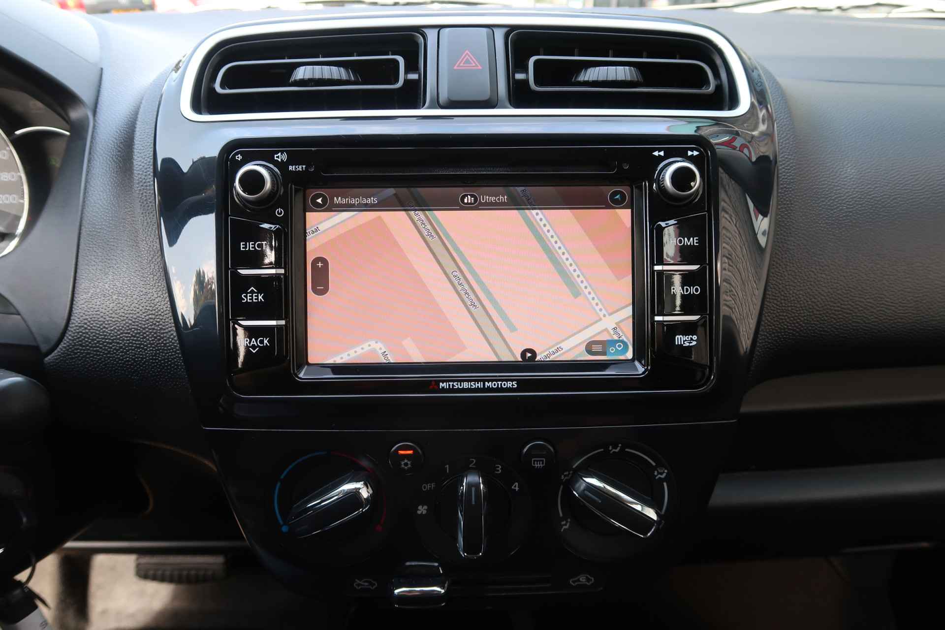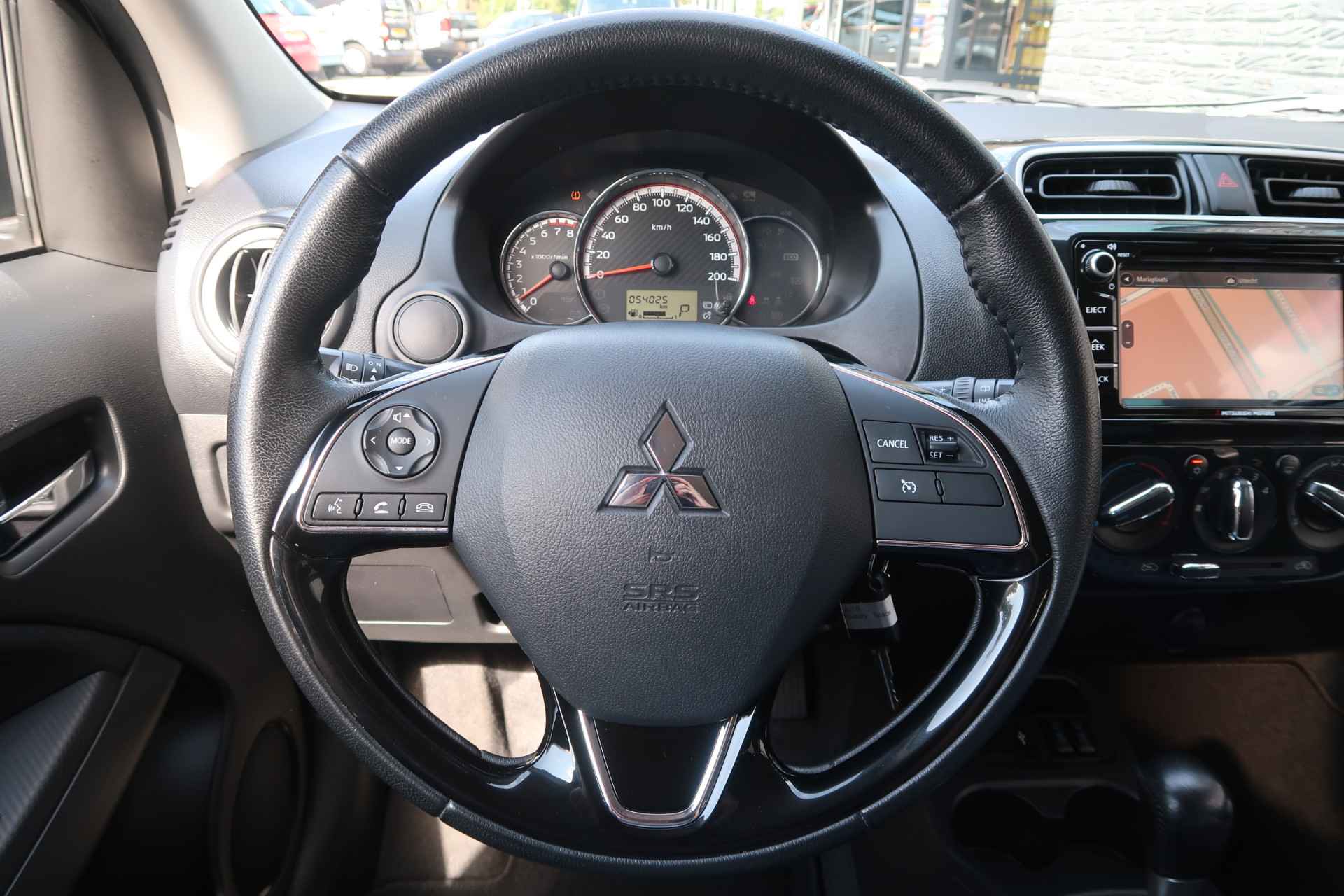 Gemakkelijk en veilig is de bediening het audio-installatiesysteem en het navigatiesysteem met knoppen op het stuur. De audio-kwaliteit is geweldig, dankzij de DAB-ontvangst. Te weinig afstand tussen u en de achterligger? De sensoren registreren het direct en de achteropkomend verkeer waarschuwing geeft een signaal. Om de veiligheid onderweg te verhogen, heeft deze Mitsubishi zowel een automatisch inschakelbare verlichting als een regensensor aan boord, zodat hij zelf de verlichting en de ruitenwissers kan inschakelen. Deze Mitsubishi is bovendien voorzien van cruise control. Dus comfortabel en zuinig rijden verzekerd! Natuurlijk heeft deze auto ook airconditioning. En deze auto heeft ook buitentemperatuurmeter, lederen stuur, isofix-aansluiting, centrale deurvergrendeling met afstandsbediening, bagage afdekhoes en boordcomputer als standaard uitrusting.