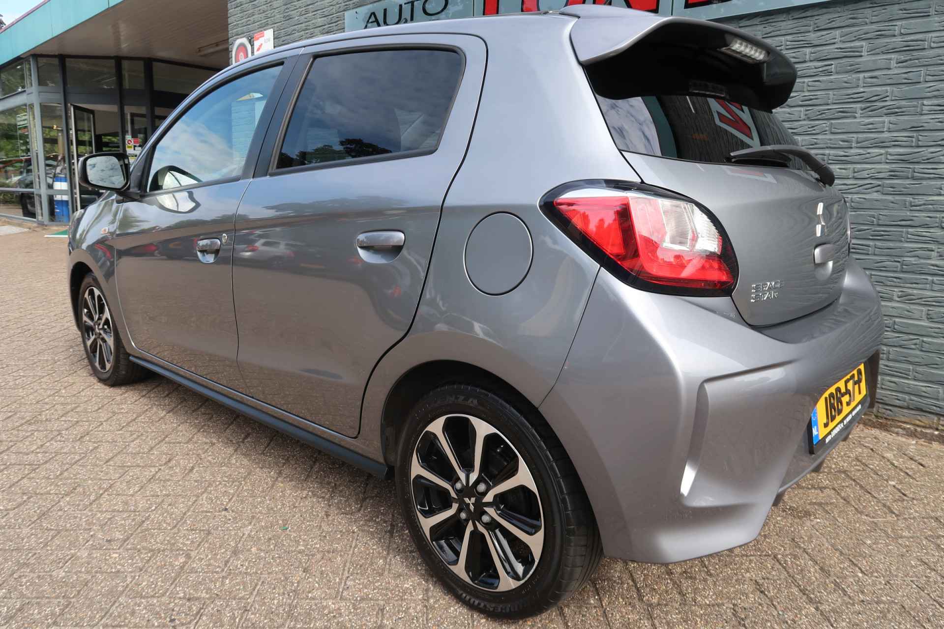 In deze Mitsubishi Space Star lijken alle parkeervakken meteen een stuk groter. De aandrijving van deze Mitsubishi wordt verzorgd door een driecilinder benzinemotor en een automatische transmissie. De verwarmbare voorstoelen benadrukken nog maar eens dat we hier te maken hebben met een regelrechte verwenauto voor bestuurder en bijrijder. Bij de uitrusting van deze Mitsubishi horen onder meer 14 inch lichtmetalen velgen, donker getint glas achter, in delen neerklapbare achterbank en LED-achterlichten.